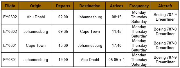 Flights will resume to Johannesburg, South Africa’s biggest city, from 25 November. At the same time, Etihad will launch its operation to the stunning coastal city of Cape Town. Both destinations will operate three times per week on Mondays, Thursdays, and Saturdays. The route will be serviced by Etihad’s flagship and most-sustainable aircraft, the Boeing 787-9 Dreamliner, with 28 Business Studios, 78 Economy Space seats and 184 Economy seats.