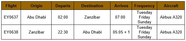 The new service to Zanzibar will operate from 26 November giving residents in the UAE the ideal winter holiday. The route will also offer easy connectivity for guests travelling from Europe and North America and transiting through Abu Dhabi. The scheduled flights will operate on Tuesdays, Fridays and Sundays on our Airbus A320 aircraft offering eight seats in Business and 150 seats in Economy.